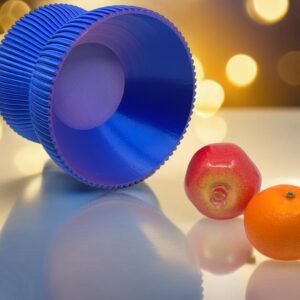 Discover the perfect fusion of form and function in our “Violet Vortex” hourglass bowl. Expertly printed in eco-friendly PLA, this piece features closely spaced vertical ribs that wrap around its cinched waist, creating a dynamic play of light and shadow. The smooth, glossy interior is ideal for serving berries, nuts, or holding jewelry and small essentials, while the sturdy silhouette lends itself to standing alone as a modern art object. Whether gracing your coffee table, entry console, or kitchen counter, the Violet Vortex brings a pop of rich purple and a dash of contemporary flair to any space.