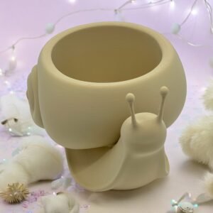 Invite playful charm into any room with “Shelly the Snail,” our 3D-printed planter and dish hybrid. Printed layer by layer in eco-friendly sandstone-colored PLA, the snail’s coiled shell forms a generous cavity perfect for a small potted plant (liner recommended), faux greenery, or organizing keys, coins, and jewelry. Meanwhile, the snail’s detailed body and antennae extend forward as if on a gentle, meandering journey—adding an enchanting sculptural element to your desktop, windowsill, or bedside table.