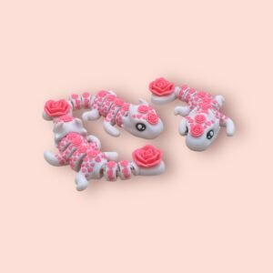 Bring a whimsical garden friend to life with our Articulated Flower Heart Lizard 3D Print. This charming reptile features a series of interlocking segments that allow its body and tail to curve and twist as though it’s exploring sun-dappled foliage. Each segment is decorated with delicate pink heart motifs, and tiny rose embellishments crown the top of its head and tail, creating a sweet floral accent.