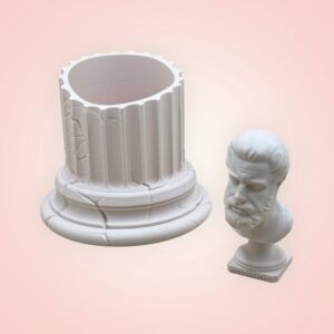 Every detail— from the chipped fluting at the top edge to the fissures snaking down the base—was meticulously sculpted to evoke a sense of age and timelessness. Printed in sturdy PLA, it arrives as a seamless, single-piece unit with crisp crack lines and a faintly textured “stone” finish. The flat bottom ensures stable placement on desktops, side tables, or shelves.
