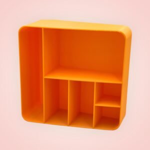 Keep your workspace tidy and stylish with this Modular 3D-Printed Multi-Compartment Desk Organizer. Crafted from durable PLA/PHA filament, the organizer houses six distinct compartments—two large side pockets, a deep back tray for notebooks or tablets, and three smaller front slots for pens, paperclips, or business cards. The smooth, matte finish and precisely rounded walls showcase the layer-by-layer texture of 3D printing, giving it both modern appeal and everyday functionality.