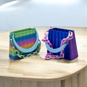 Elevate your space with our Rainbow Pleated Purse Decorative Accent, an eye-catching 3D-printed statement piece that combines playful fashion flair with vibrant color. Inspired by classic handbag design, this sculptural accent features elegantly pleated panels, a sturdy top handle, and a detachable chain strap—each element expertly rendered in eco-friendly PLA with a subtle matte texture. The purse’s body showcases a seamless gradient of bright, joyful hues: emerald green, teal blue, fuchsia, sunflower yellow, and coral pink, melting into one another for a full rainbow effect that instantly energizes any room.